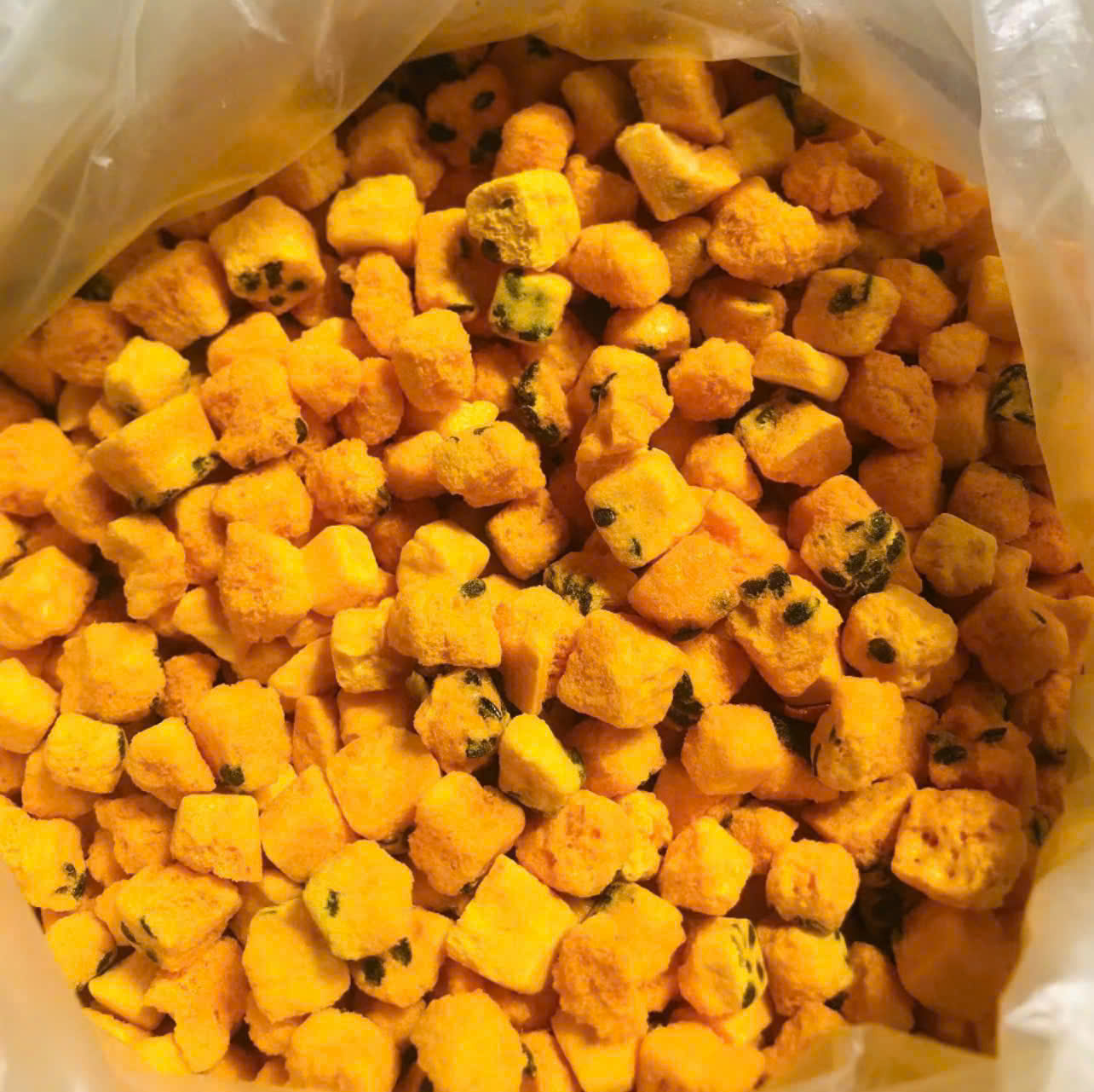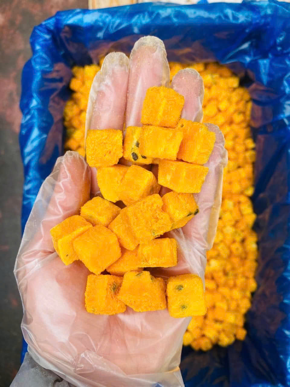 Freeze-dried passion fruit is made from fresh, fully ripe fruits that undergo a gentle freeze-drying process to preserve their naturally vibrant color and intense tropical aroma. This method removes moisture while maintaining the fruit’s tangy-sweet flavor and rich nutrient profile. The result is a light, crunchy texture with a bright, refreshing taste that captures the essence of fresh passion fruit. Packed with vitamin C, antioxidants, and natural fiber, freeze-dried passion fruit is both a flavorful snack and a premium ingredient for food applications. It can be enjoyed on its own or added to smoothies, yogurt, desserts, and beverage blends for a bold tropical boost.